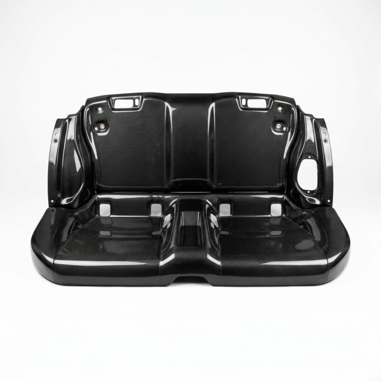 際立つカーボンテクスチャ、精密な複合材構造、および高級感のある外装ディテールを備えた、自動車の軽量化用途向けカスタムカーボンファイバー製リアシートパネル・ソリューションです。