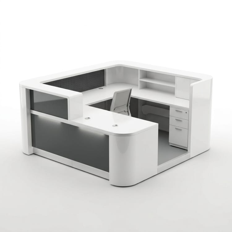 軽量な筐体構造、洗練された商業デザイン、および設置場所に応じた柔軟な構成を備えた、カスタムエントランス受付ブースソリューション。