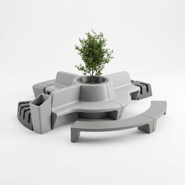 表現豊かな成形フォルム、耐久性のある屋外用素材、および景観への柔軟な統合を備えた、公園や公共スペース向けのカスタムストリートファニチャークラスターソリューション。